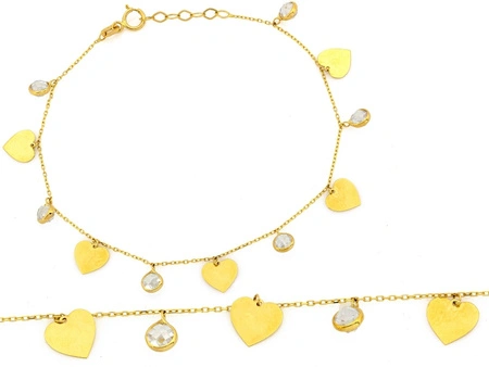 Bransoletka złota z kuleczkami i wiszącymi sercami
