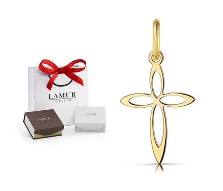 Złoty krzyżyk 585 - zawieszka z niebieską cyrkonią