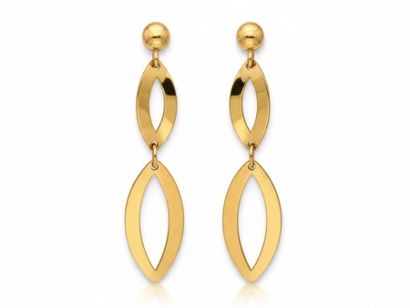 Złote kolczyki ażurowe trójkątne liście duże wiszące
