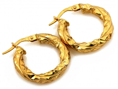 Kolczyki złote kółka błyszczące zdobione 16mm