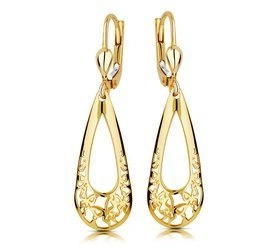 Złoty naszyjnik 585 - łezka z kwiatowym ażurowym wzorem