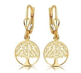 Złote kolczyki 375 drzewka - wiszące