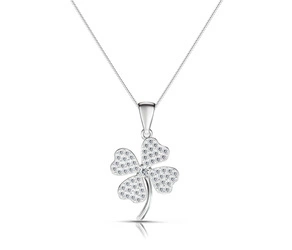 Naszyjnik srebrny 925 z diamentowymi cyrkoniami - koniczynka, serce