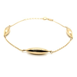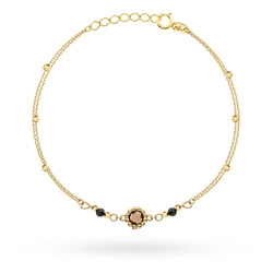 Złota bransoletka 585 z kwarcem dymnym i czarnymi kuleczkami