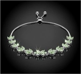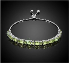 Bransoletka srebrna 925 z 6 naturalnymi oliwinami i diamentowymi cyrkoniami
