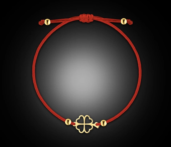 Złota bransoletka 585 koniczynka serce na sznurku