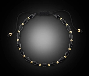 Złota bransoletka 585 z kwarcem dymnym i czarnymi kuleczkami
