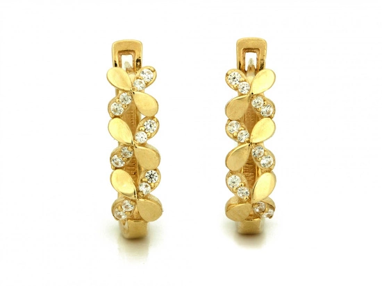 Złote kolczyki liście na sztyfcie z cyrkoniami