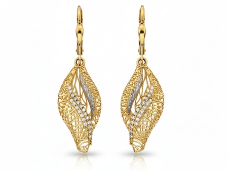 Kolczyki złote zdobione cyrkoniami dwukolorowe