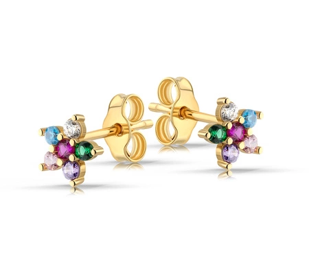 Złote kolczyki 585 z kolorowymi cyrkoniami - kwiatki