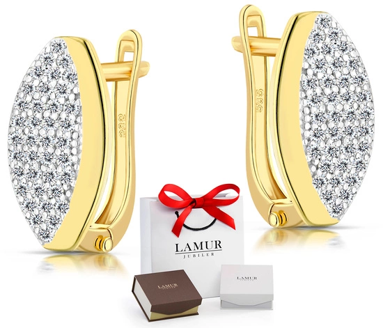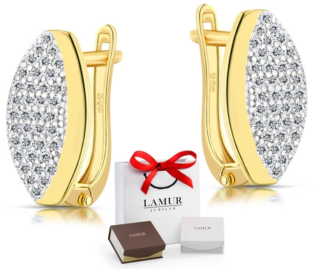 Srebrne kolczyki pokryte złotem z diamentowymi cyrkoniami