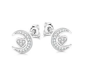 Srebrne kolczyki 925 z diamentowymi cyrkoniami - księżyc, serce
