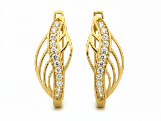 Kolczyki złote na biglu z cyrkoniami
