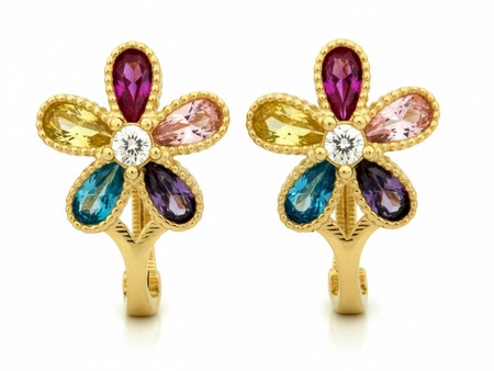Kolczyki złote na sztyfcie z kółeczkiem i kwiatkiem