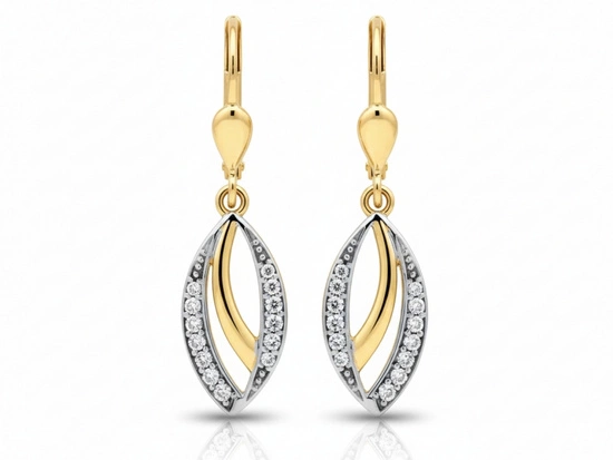 Kolczyki złote zdobione cyrkoniami dwukolorowe