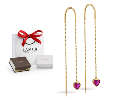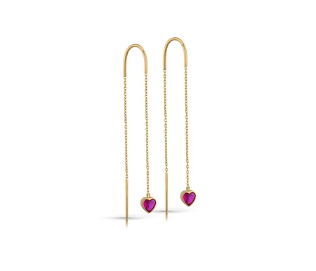 Złote kolczyki 585 przewlekane - serduszka z cyrkoniami