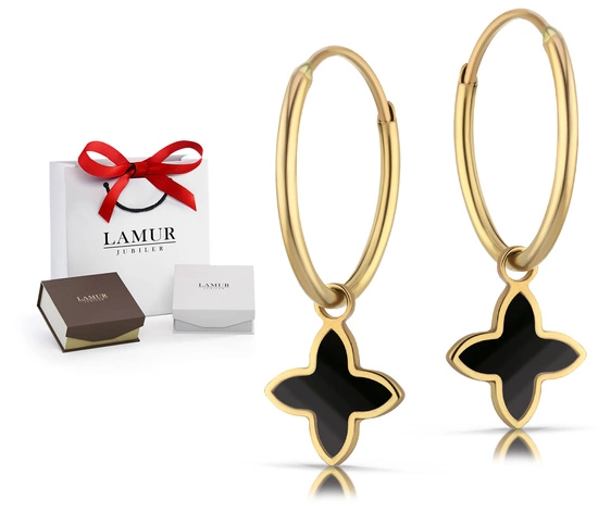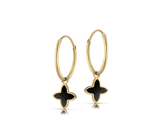 Złote kolczyki koła 585 z masą onyksową - kwiatuszki