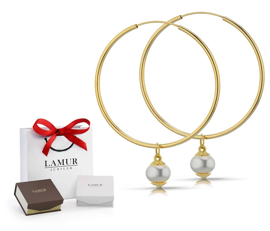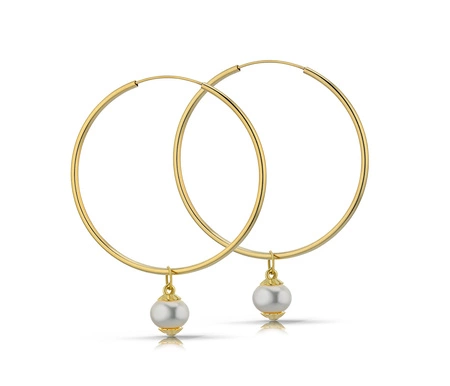 Złote kolczyki koła 585 z perełkami - 22 mm