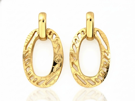 Kolczyki złote blaszki zdobione frezowane bez kamieni