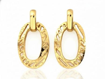 Kolczyki złote wiszące z owalnych obręczy i łańcuszków na sztyfcie