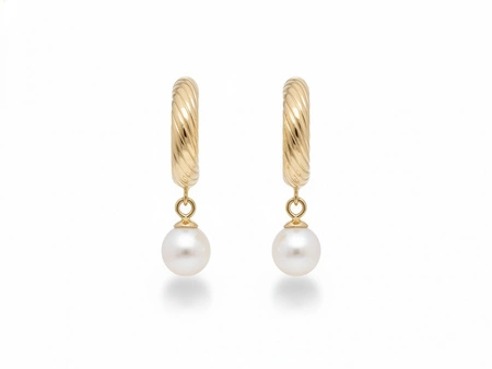 Kolczyki złote delikatne wiszące na sztyfcie z perłą