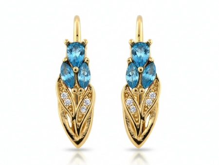 Kolczyki złote angielskie z niebieskimi prostokątnymi kamieniami