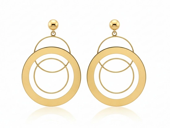 Kolczyki złote błyszczące oryginalne wiszące na sztyfcie
