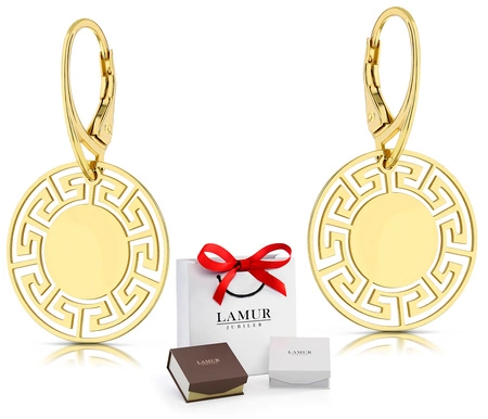 Złote kolczyki wiszące 925 - ażurowe koła greckie
