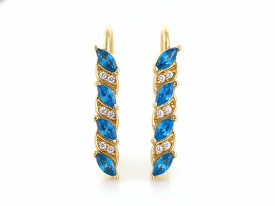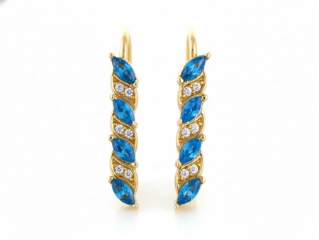 Kolczyki złote angielskie z niebieskimi i białymi kamieniami