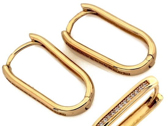 Złote kolczyki długie owalne sztywne