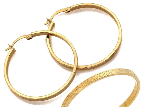 Kolczyki złote koła z greckim wzorem 31mm
