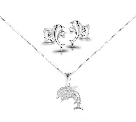 Zestaw srebrny 925 naszyjnik z kolczykami - delfinki