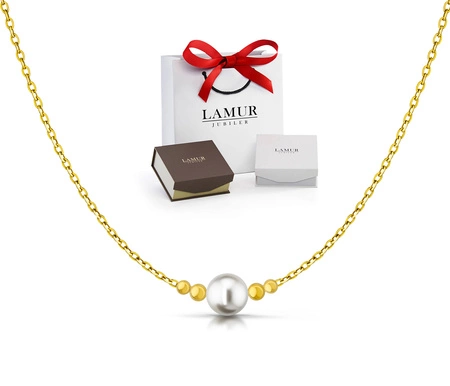 Złoty naszyjnik 585 z perłą i kuleczkami