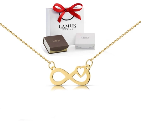 Złoty naszyjnik 585 - nieskończoność z serduszkiem
