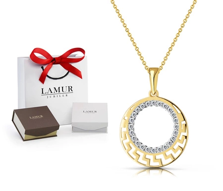 Złoty naszyjnik 585 - grecki wzór z cyrkoniami i białym złotem