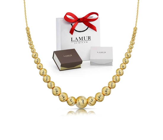 Złoty łańcuszek, naszyjnik 585 kulkowy diamentowany