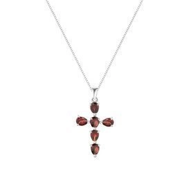 Naszyjnik srebrny 925 z 6 naturalnymi granatami - krzyżyk
