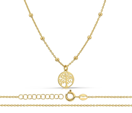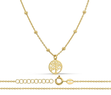 Złoty naszyjnik 925 drzewko szczęścia z kuleczkami - 42 - 45 cm