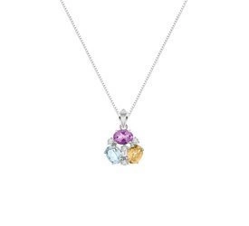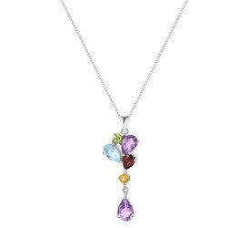 Naszyjnik srebrny 925 z naturalnym ametystem, topazem, cytrynem i diamentowymi cyrkoniami
