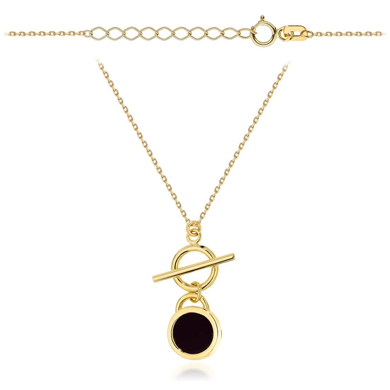 Złoty naszyjnik 585 nowoczesny z onyksem w złotej oprawie