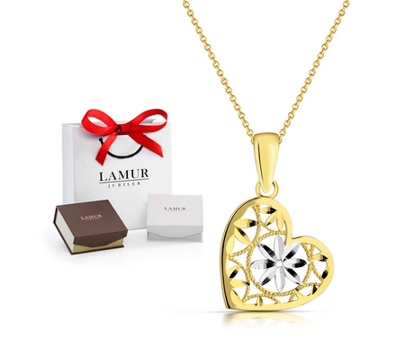 Złoty naszyjnik 375 - ażurowe serce z kwiatem