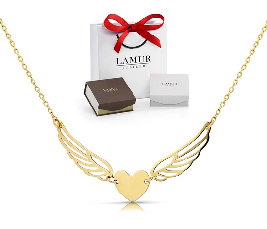 Złoty naszyjnik 585 - serce ze skrzydłami, uskrzydlone serce