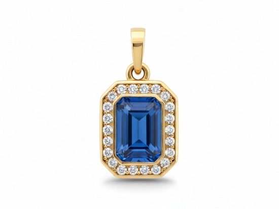 Prostokątna zawieszka złota z niebieskim kamieniem