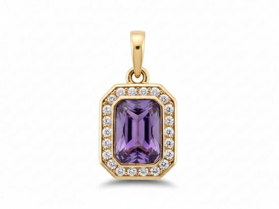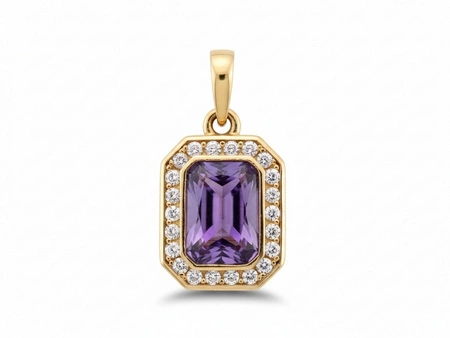 Zawieszka złota prostokątna z fioletowym kamieniem