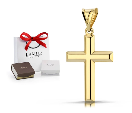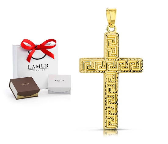 Złoty krzyżyk 585 - zawieszka z greckim wzorem