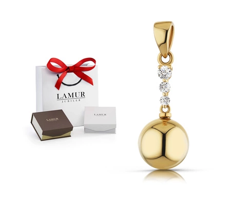 Złota zawieszka 585 wisząca kuleczka z cyrkoniami