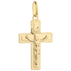 Zawieszka złota duży medalik z krzyżykiem z cyrkoniami z czarnymi kamieniami