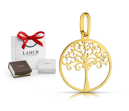 Złota zawieszka 585 - drzewko szczęścia z serduszkami