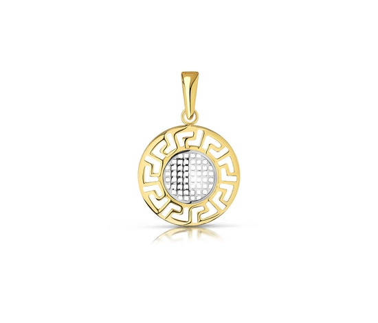 Złota zawieszka 585 koło z greckim wzorem z cyrkoniami