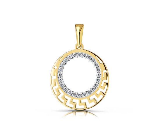 Złota zawieszka 585 koło z greckim wzorem z cyrkoniami